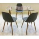 Chaises velour design à dossier, pieds en tube d'acier décor bois