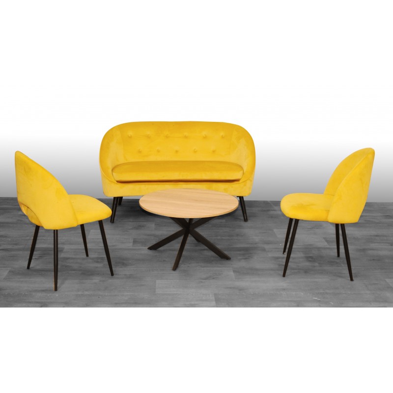 Composition d'un canapé Ventura, deux sièges victoria et une table basse utha, ensemble coin réception confortable.